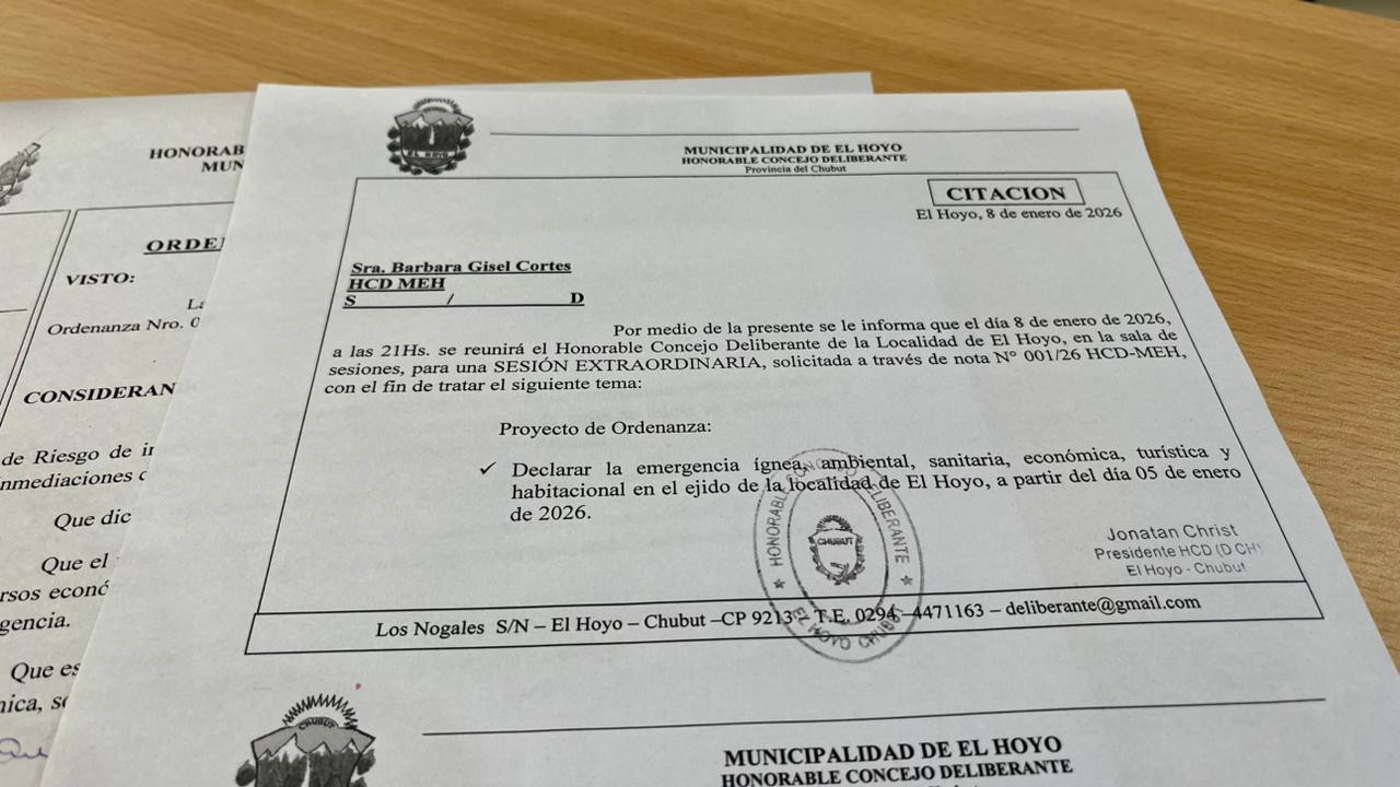 Hoy por la mañana, en sesión extraordinaria y con la presencia de seis de sus ediles, el Concejo Deliberante de El Hoyo declaró la Emergencia ígnea, ambiental, sanitaria, económica, social, turística y habitacional en el ejido municipal, a partir del incendio forestal iniciado el 5 de enero.